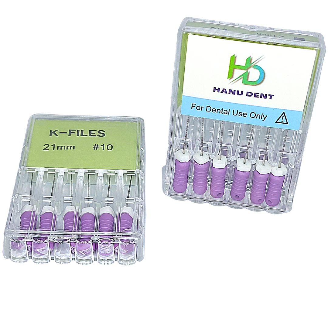 Hanu Dent endodontic Stainless Steel K Files are the newest launch from Hanu Dent. These are files that unwind very slowly before fracturing. These files with dimensionally larger handles for better grip and greater feel on fingers. They have a higher resistance to unwinding and breakage, smooth operation and high working efficiency. Moreover, the cost of these files is among the lowest compared to top brands in the market.