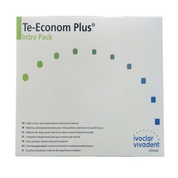 Light-curing, radiopaque hybrid composite. Te-Econom Plus has excellent physical properties and great polishability that makes it suitable for use in both anterior and posterior restorations. The high radiopacity allows easy identification in x-rays. Te-Econom Plus has a long working time that helps the clinical perform the dental procedure efficiently. Eco-Etch etching gel is composed of 37% phosphoric acid, having optimal handling characteristics and good etching effect on enamel and dentin. Te-Econom Bond is one bottle, one layer adhesive to be used with the total-etch technique.