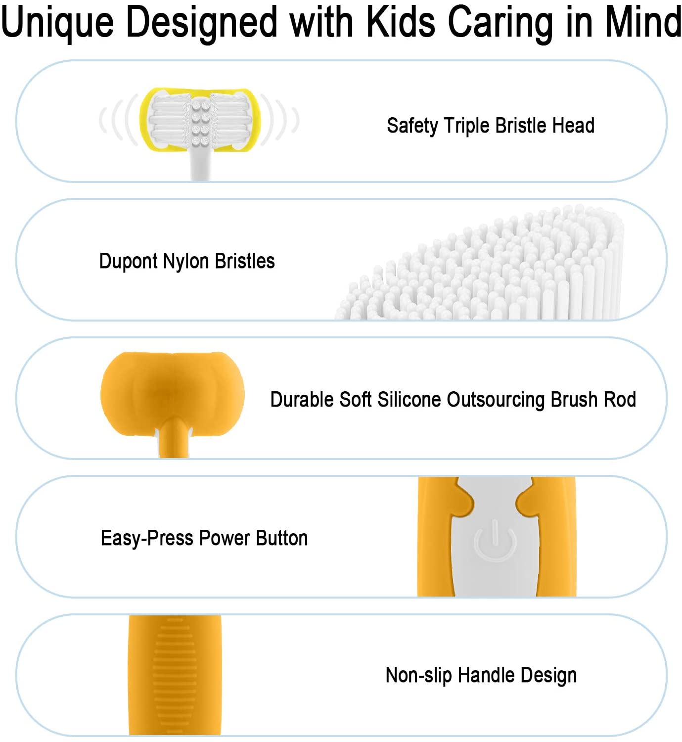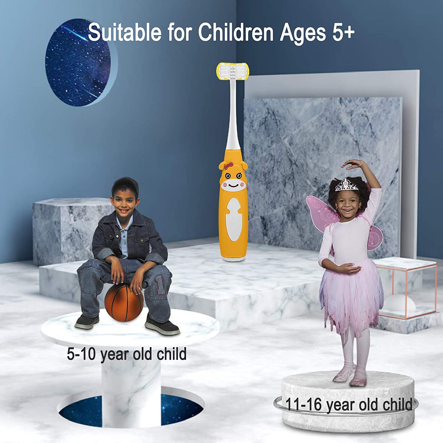 - 3-Sided Bristles Design: Three sided best kids toothbrush electric has been scientifically designed with 32,000 sonic stroke vibrations per minute to give your child teeth the best possible clean in 3 the time of other kids toothbrushes.