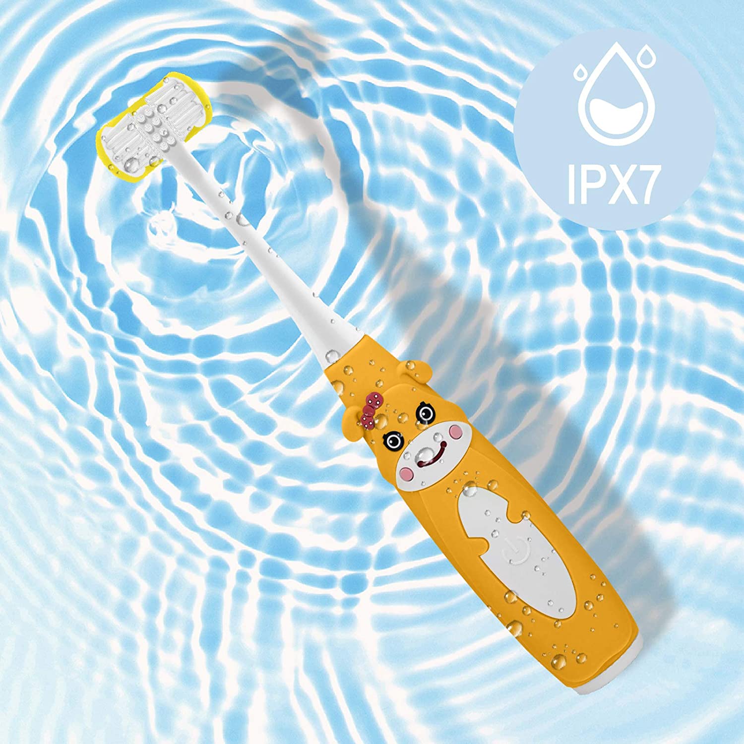 3-sided best kids toothbrush is made of high quality DuPont hair, soft and durable, healthy, safe and hygienic. It has three smart cleaning modes to meet your different needs, efficient cleaning, low noise, rechargeable, portable, suitable for home and travel. The 3 sides of bristles helps effective cleaning without much supervision.